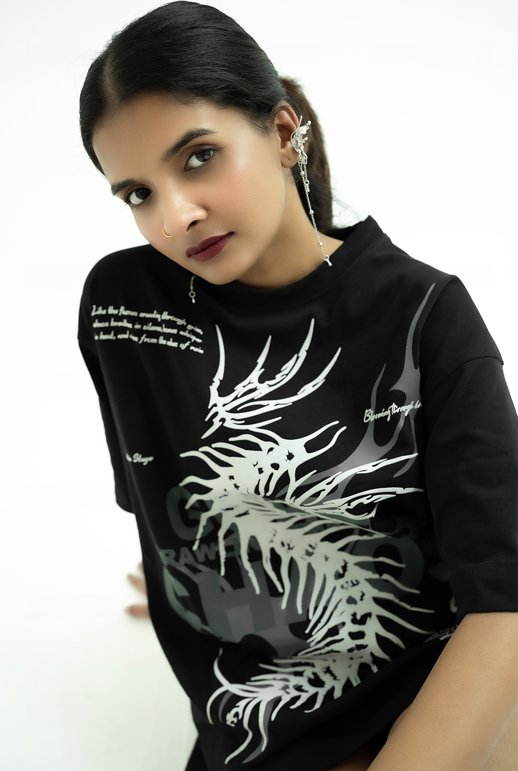 Meet the Slayer of Chaos tee, a savage vision stitched in heat. Featuring a warped, spiny creature clawing through a storm of distortion, this massive chest print collides soft grunge